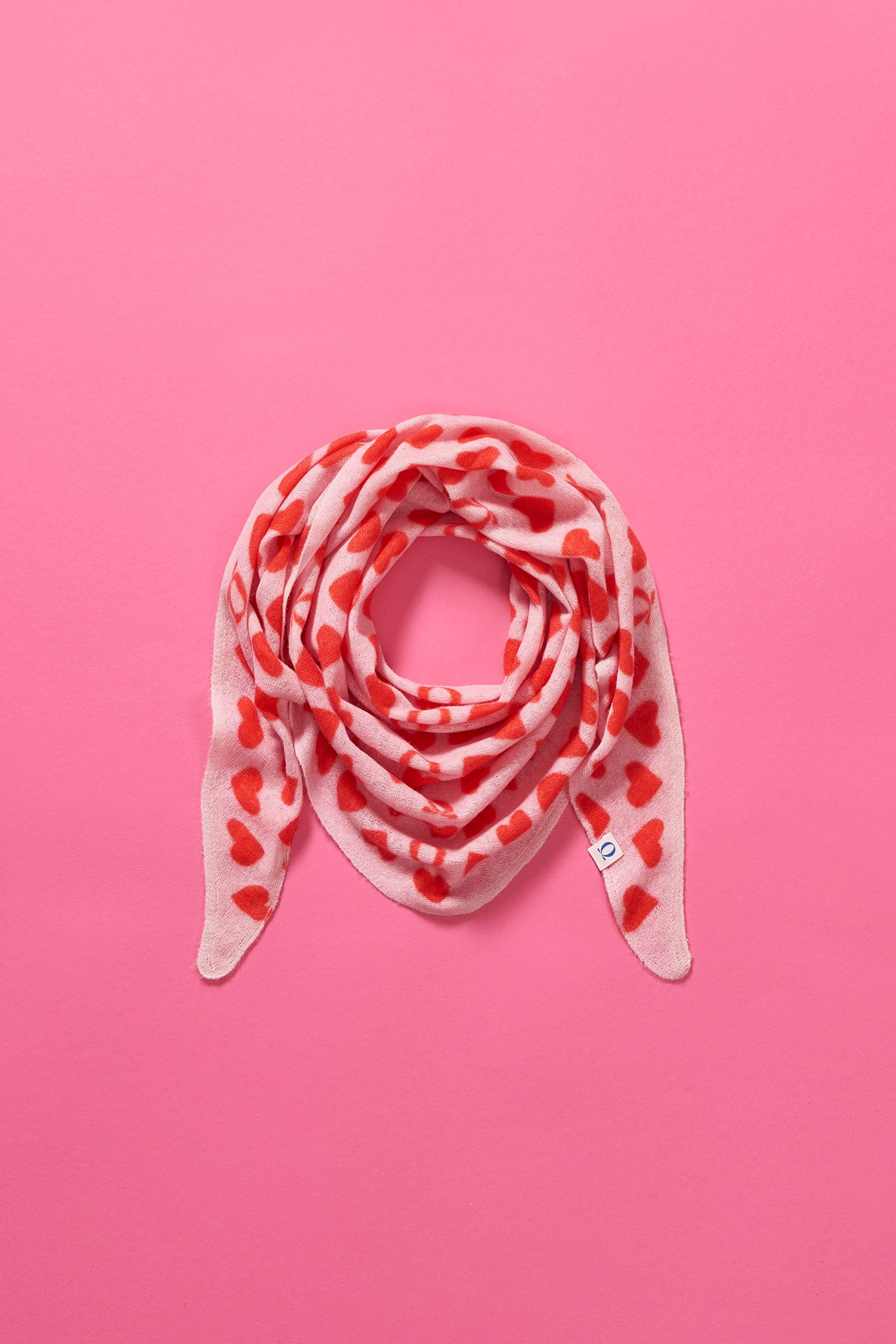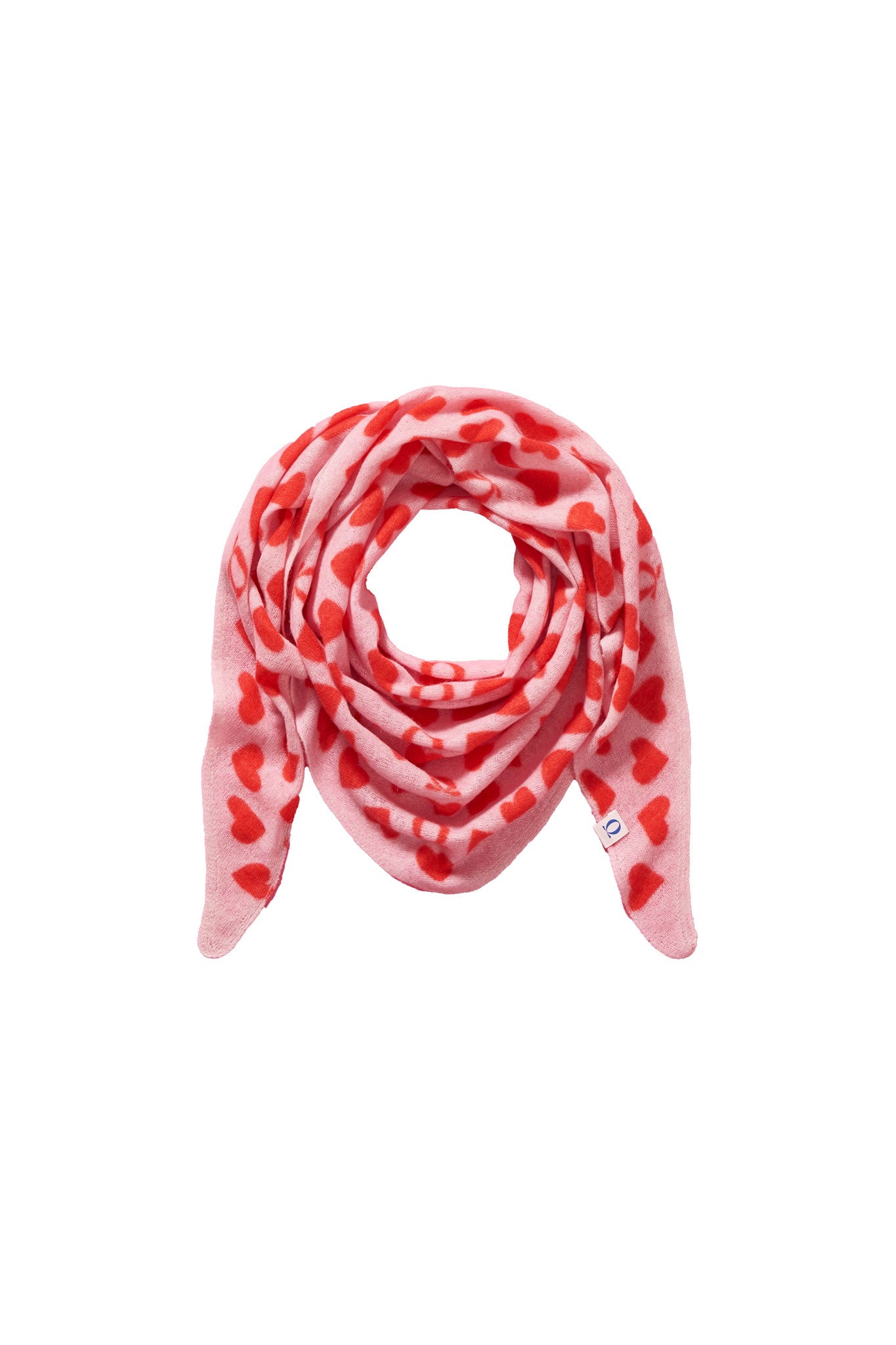 Heartbeat ist unser Valentins-Dreieckstuch mit einem eleganten Herz-Print: auf zartem Rosé setzen sich weiche Herzformen in Kirschrot und warmen Rotnuancen ab.