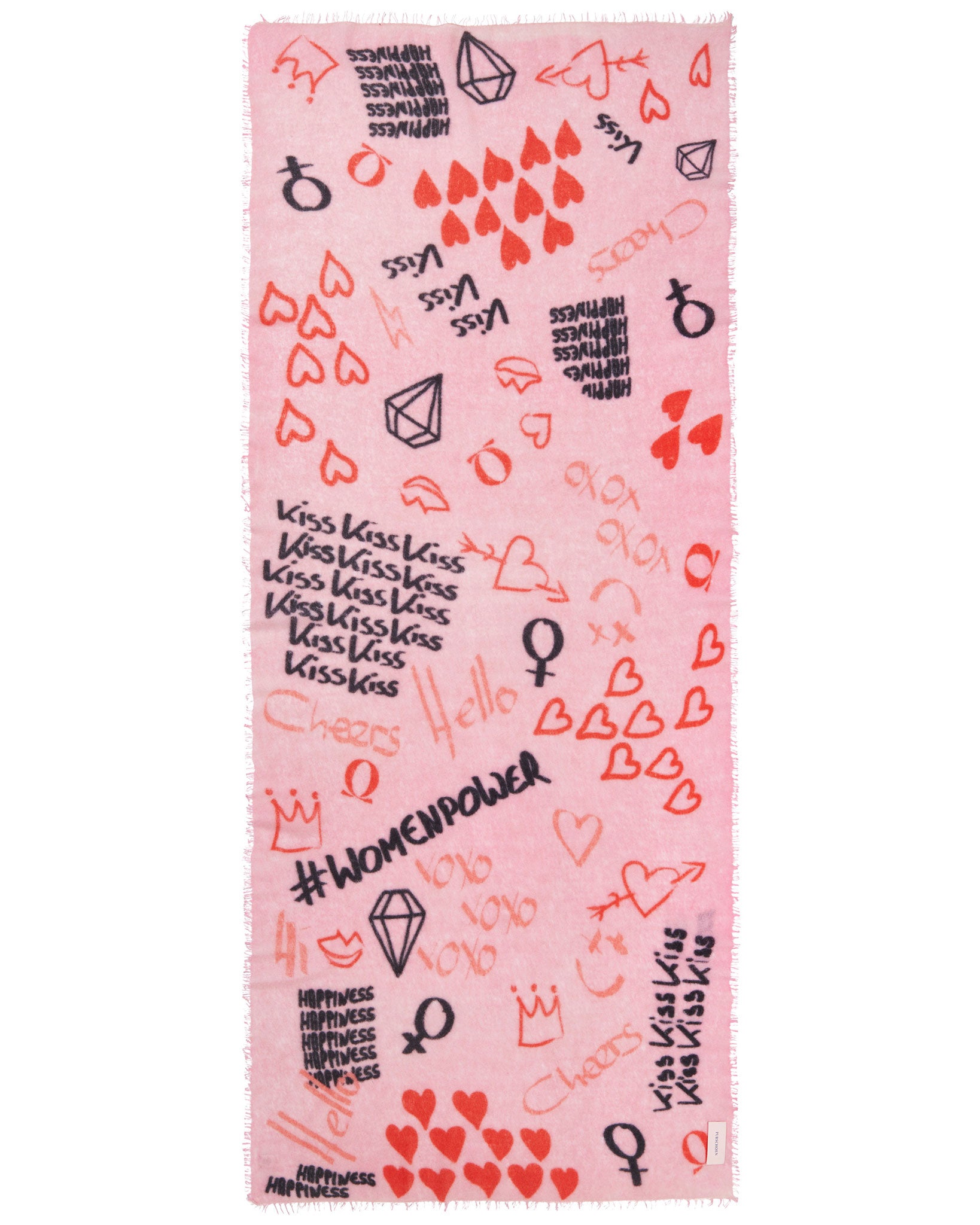 Kaschmirschal Graffiti Love Puder Pink – bedruckt, 100 % Cashmere | PURSCHOEN