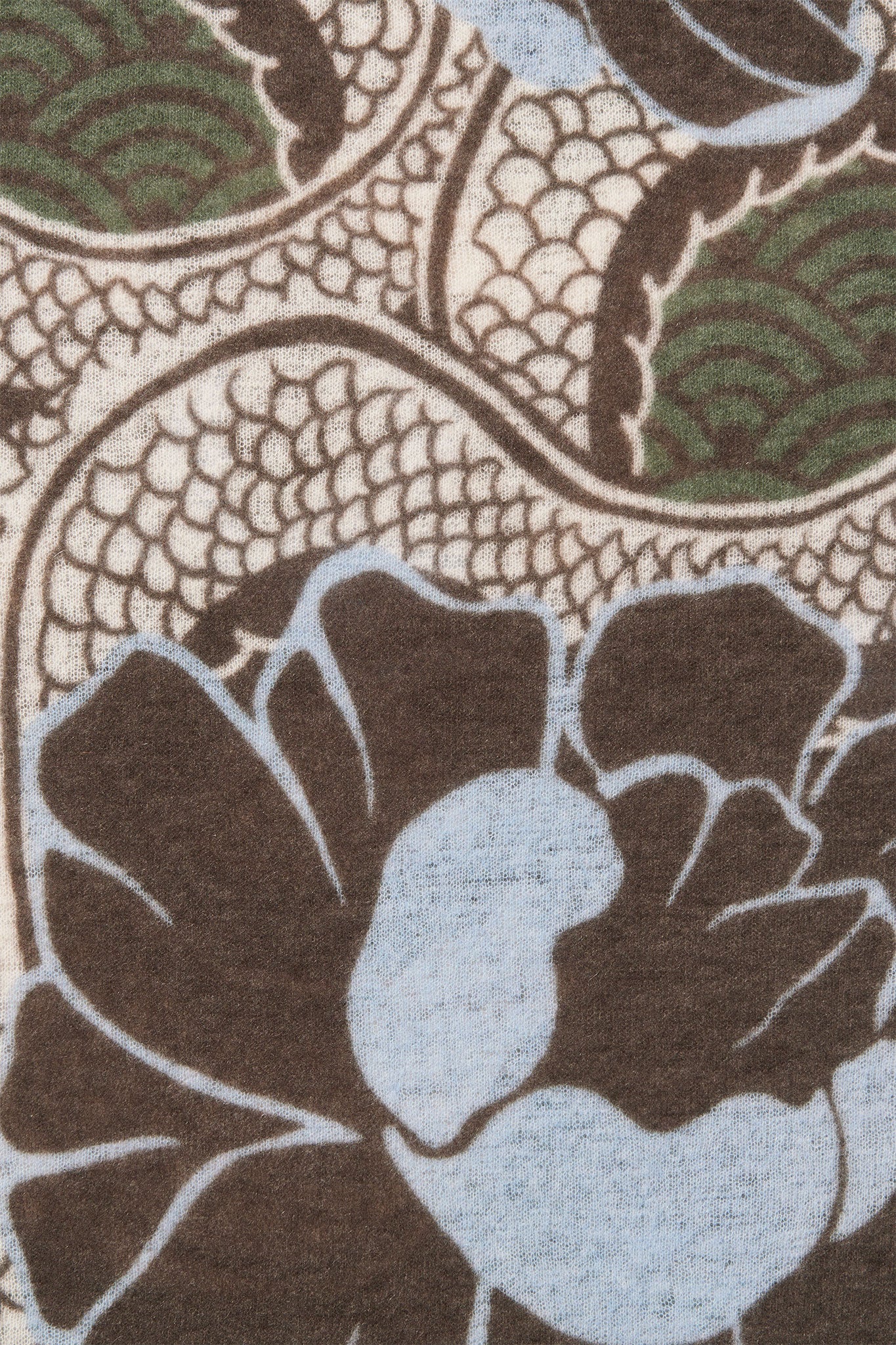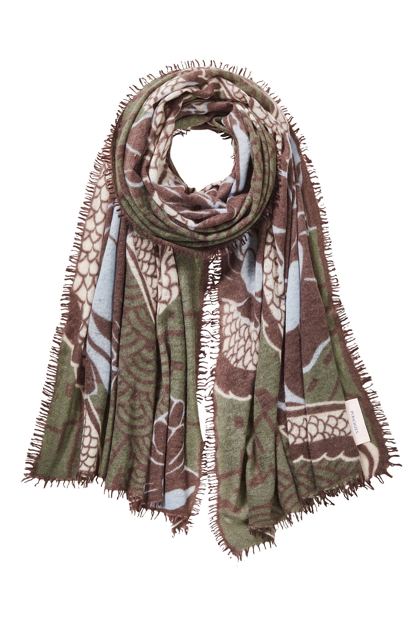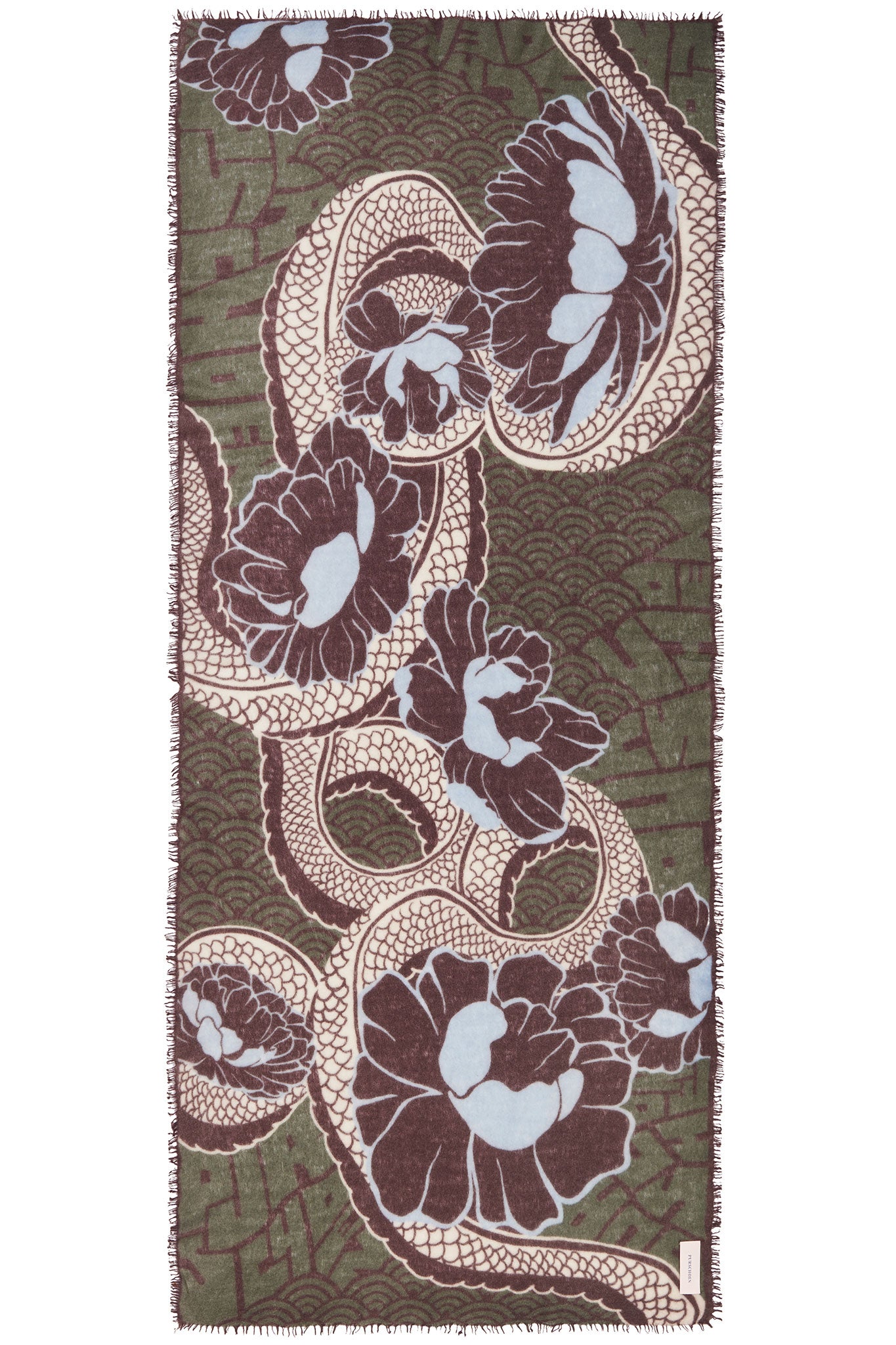 Kaschmirschal Tokyo Garden Military Chocolate – bedruckt, 100 % Cashmere | PURSCHOEN
