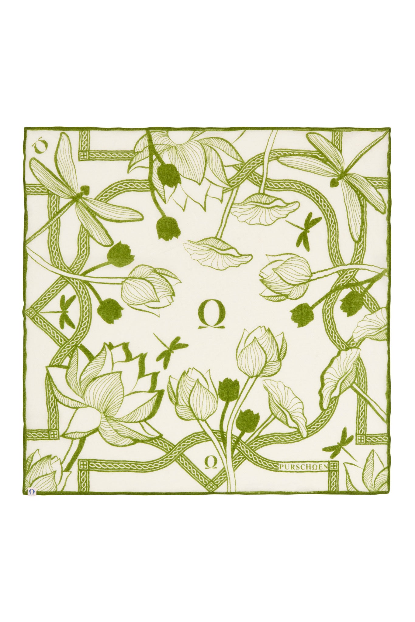 Ein grafischer Print wie eine feine Zeichnung: Libellen schweben zwischen stilisierten Blüten, gerahmt von einer ornamentalen Bordüre. Die Komposition wirkt ruhig, gepflegt und modern – ein kleines Luxusstück, das jedes Outfit sofort „fertig“ aussehen lässt. Gefertigt aus feinem Kaschmir: federleicht, weich und angenehm anschmiegsam.