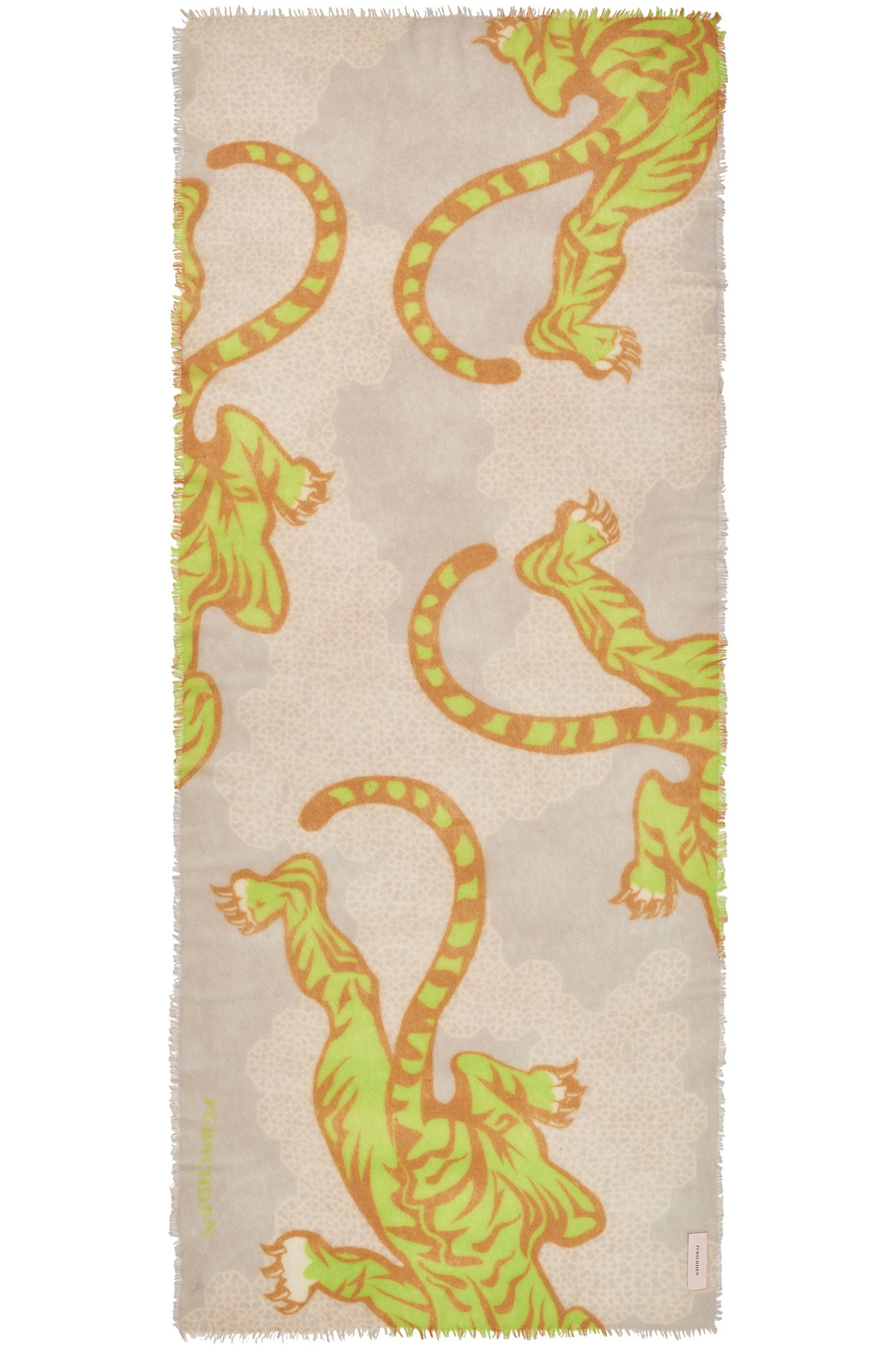 Kaschmirschal Bengal Tiger Grey Lime – bedruckt, 100 % Cashmere | PURSCHOEN