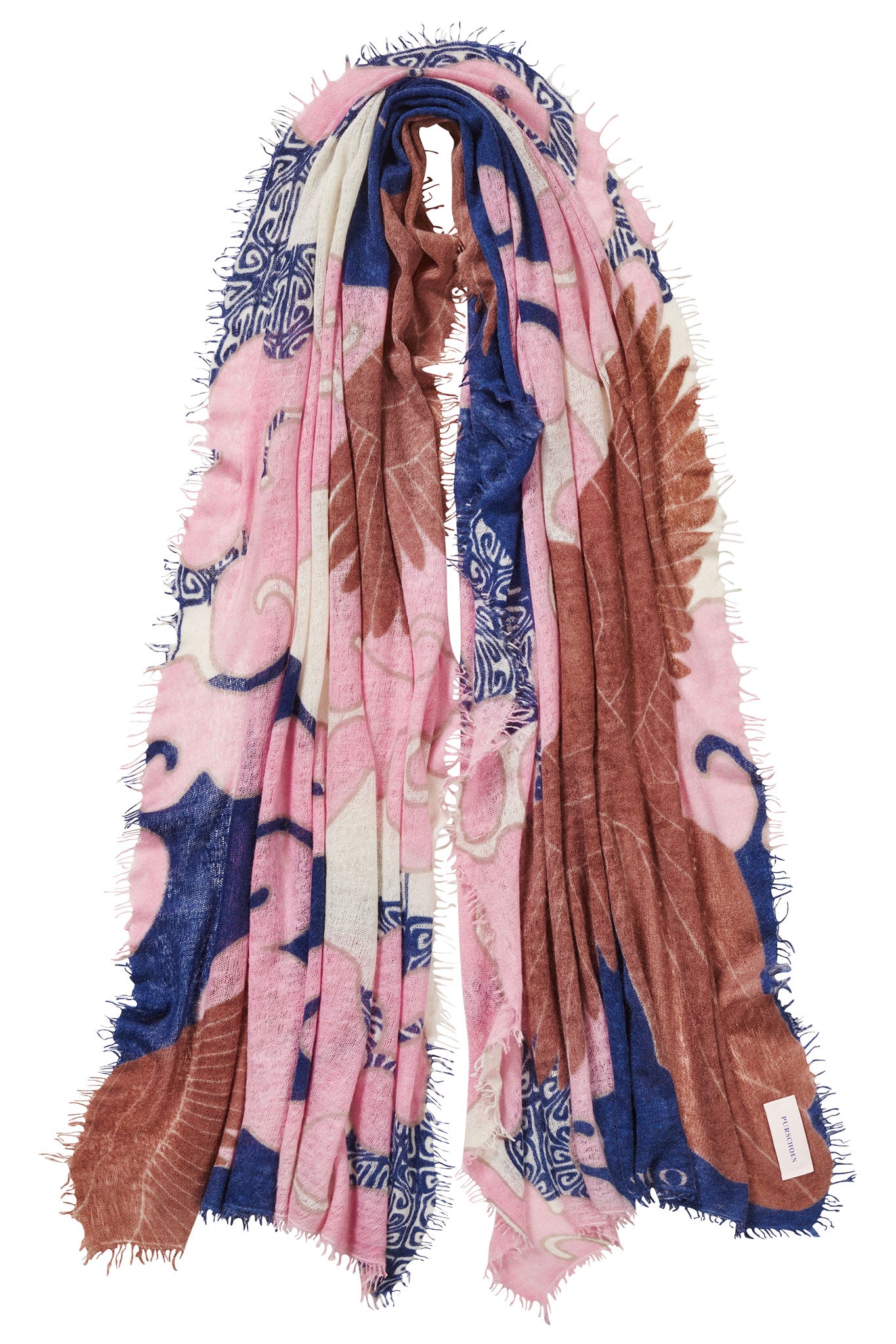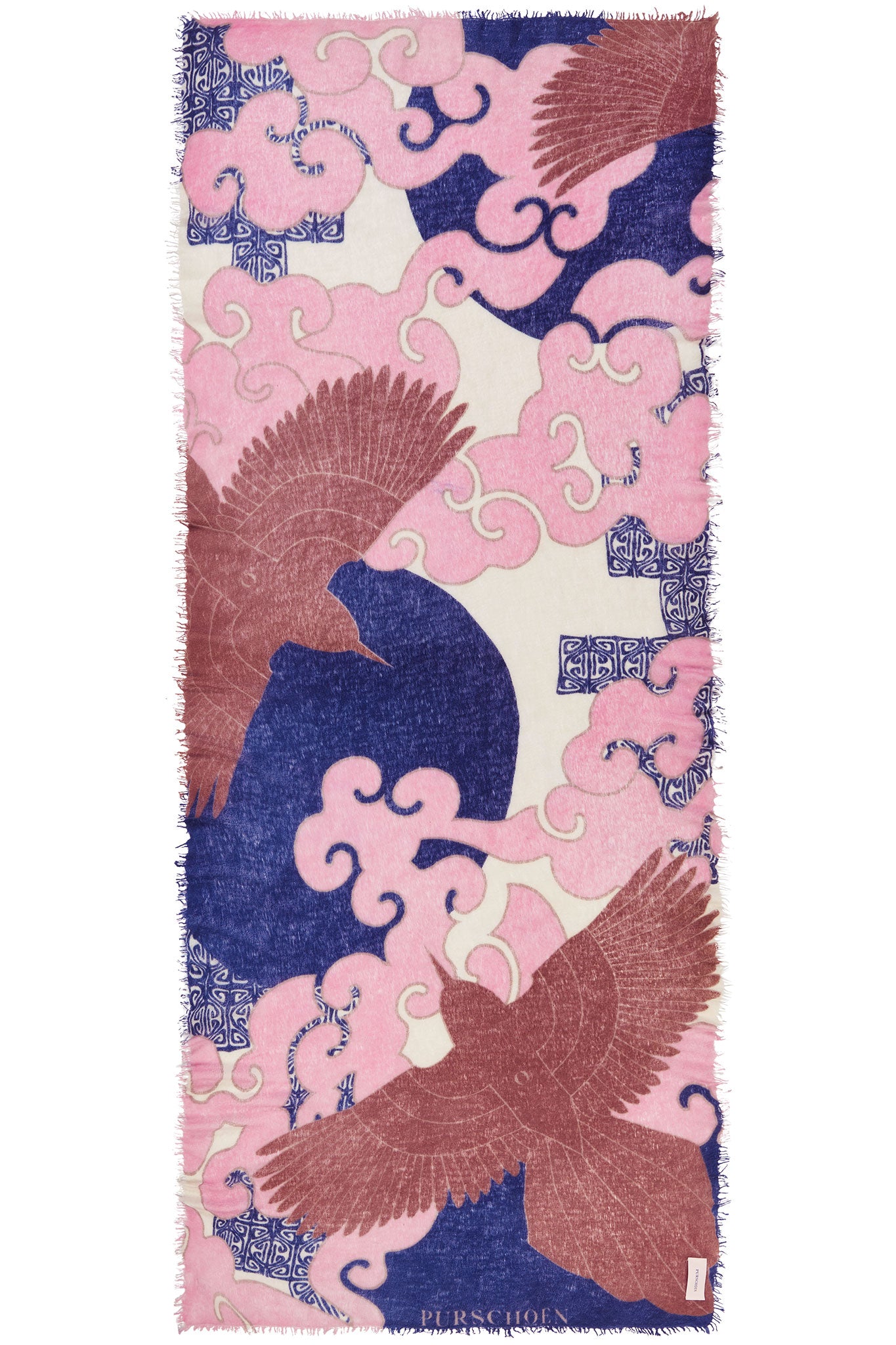 Kaschmirschal Himmelsflug Navy Rose – bedruckt, 100 % Cashmere | PURSCHOEN